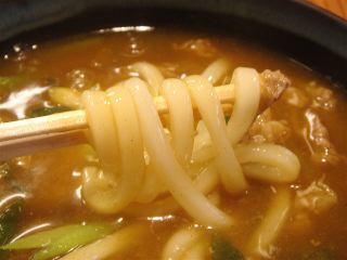 スパーシーなカレールー。液状でなくてトロミがかなりある。太いうどんで、讃岐うどんとは違った粘りがある。汗が噴き出す。満足の一杯であった。(2010/06)