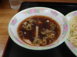 あの丸長の味が、ここつくば市でも味わえる。なんと20年以上前から営業しているようだ。つくば駅からもう少し近いと思っていたが、意外に遠かった(疲)。建物の影になっており、ちょっとわかりにくい場所にある。メニューはつけ麺550、つけ麺玉子入り600、同ワカメ入り600、同メンマ入り750、同チャーシュー入り750、大盛り+100。店内は満員で私の前には1組のカップルが席の空くのを待っている。5分ほどで着席し、つけ麺を注文。