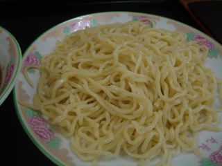 麺は太麺縮れの自家製麺。しっかりとしまっており、喉ごしもよく美味。独特の食感で、麺だけ食べても美味しい。つけ汁は甘味と酸味と辛味がバランスよく感じられるもの。具は、細切りチャーシュー・メンマ・ネギ。店員さんの動きもテキパキしていて気持ちいい。最後にスープ割りを頼んでダシの旨味を再確認してごちそうさま。うーん、満足!(2006.05.26)