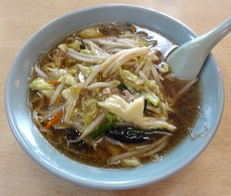 甘めのスープと餡が美味しさを倍増させている。麺は柔らかめ。個人的にはもう少し茹で時間が短くてよいがお年寄りには柔らかめの方がいいかもしれない。(2019/06)