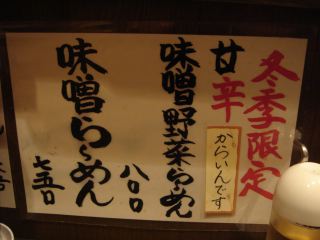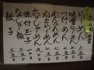 妻と次男と行く。珍しく熱っぽい状態で、ちょっとフラフラしながら焼き味噌らーめんを食べた。ラーメンを食べれば元気になるかと思ったが、家に帰って体温を計ると37.3度。ラーメンの力もここに及ばす・・・・残念!(2004/11/21)
