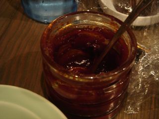 さて野菜がどかっとのった味噌野菜らーめんは、スープは味噌の旨みとコチジャン(写真最後)の辛味がうまくマッチしていて、まさに“旨辛”である。麺は、自家製の中太ストレート麺でこれだけのスープにも負けていない。具は、野菜炒め(多め)・豚バラ肉・メンマなど。質と量に満足していると、なんと長男が自分で支払うという。バイトでがんばっているからね、と言わんばかりに・・・ 心も満足した。(2005.12.10)