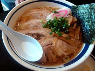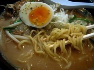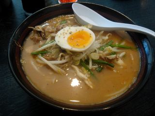 そこそこ時間がかかったが、まず出てきたのが餃子。三人であっという間に平らげ、しばし待つ。そしてラーメンが出てきた。味噌ラーメンはこってりとしたスープ。ダシは比内鶏と利尻昆布を中心にとっているという。ピリ辛のみそ味は身体が暖まる。泰平ちゃん焼きとはやきそばにキャベツの千切りをトッピングしたもの。温泉玉子とカラシと紅生姜がついている。日の出製麺所の“そばやき”に似ているか?(2006.10.09)