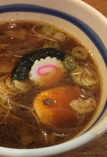 和風つけめんを注文。券売機がこわれているのか、店員に注文を伝えて現金前払いだった。つけ汁にはえのきが多量に入っており、和風の感じがあった。魚だしはそれほどでもないなぁ。写真撮るのを忘れてしまった。(2015/6)