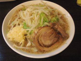 しばらくしてから入って来た若い女性2人が注文したラーメンが先に登場した。ぎ郎は時間がかかるのだろうが一言口添えがあればいいのになぁ。出てきたラーメンは二郎インスパイアである。スープは二郎としてはジャンクさがかけるが豚骨に脂がかなりのっているもの。麺は、極太で食べごたえがバッチリすぎる麺。具は、チャーシュー・野菜・ニンニク。二郎とは異なる点もあるが、それはそれ。美味しくいただきました。というか、一杯で満腹になります。(2008/8/24)