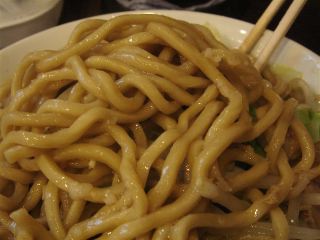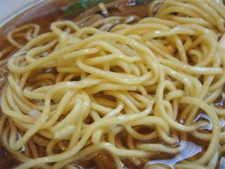 かなり時間がかかったがやっと出てきた。スープは熱々の醤油味。油少なめにしては意外に油が多い。油多めと言ったらもっと凄いのかも知れない。煮干しの香りが強いが、凛としたスッキリ感もある。生姜が利いているのかな? 麺は中ほぼストレートでぼそぼそした食感。具は、チャーシュー・サヤエンドウ・メンマ・ネギ。(2008/12/25)