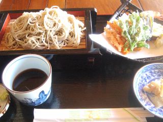 出てきた天せいろそばは、写真のように十割そばと天ぷらの組み合わせ(当たり前か)。天ぷらは、海老・サツマイモ・ギンナン・ニンジン・ナスなど身近な食材が中心です。お新香も美味しくいただきました。もちろんおそばも美味しくて、これなら大盛にしておけばよかったと後悔しました。(2010/11/19)