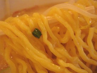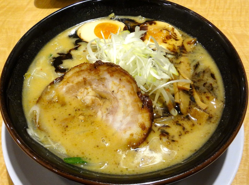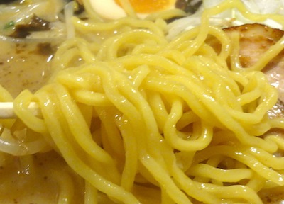 たちまち出てきたラーメンは、写真のように全体に白っぽい色になっている。スープは豚骨ベースで白味噌独特の甘みがある。麺はいわゆる札幌ラーメンの黄色っぽいコシのあるもの。具はチャーシュー・味付玉子・メンマ・ネギ。いろいろな味噌らーめんが楽しめそうだ。(2011/5)