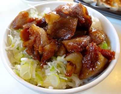 私は豚骨醤油ラーメン、長男は淡麗塩ラーメン650、サイドメニューとして餃子350、ミニチャーシュー丼250も注文。豚骨醤油ラーメンってほとんど家系でした。淡麗塩ラーメンは美味しいですね。(2012/11)
