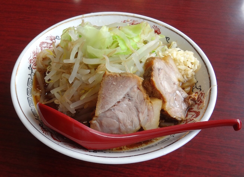 2018/2/15に開店したお店。券売機で二郎系ラーメンの食券を買い、お姉さんに手渡す。麺の硬さや味、脂の好みを聞かれたので、すべて普通でお願いした。出てきたラーメンはまさしく二郎風なラーメン。極太麺にキャベツともやしがトッピングされている。二郎の経験値が低いので、二郎との相違はなんとも言えないが、二郎「系」ラーメンだから、なんでも許されそうな感じだ。