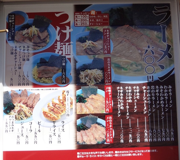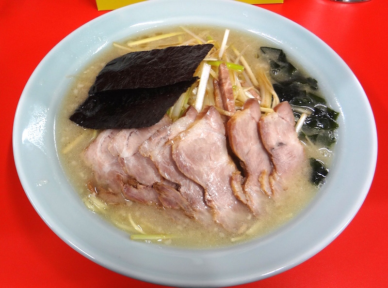 2019年5月10日オープン。地元だったのになかなか気がつかず、やっと訪問。メニューは、ラーメン600、みそラーメン650、わかめラーメン700、ネギラーメン800、チャーシューメン850、ネギチャーシューメン1050、餃子200など。券売機でネギラーメンの食券を買う。何かお好みはありますか? と聞かれたが、初めてだったので「普通で」とお願いした。