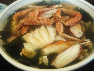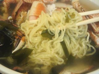さらにしばらく待つ。板場や厨房は1階にあるので、様子がわからない。そして待つ。20分くらい待ったであろうか、やっと磯ラーメンが登場した。写真にあるように圧巻である。とにかく具がすごい! 毛ガニ(多)・イカ(多)・エビ・ホタテ・ツブ貝・ホッキ貝・ワカメ(多)。具だくさんで食べるのに時間がかかる。カニフォークもついてくるので、それを使ってカニを食べる。最初に出てきたおしぼりも必須アイテムだ。スープは潮味、麺は中やや縮れ。とにもかくにも具でビックリのラーメンである。これで1,050円とはサービス価格であろう。(2007.7.29)