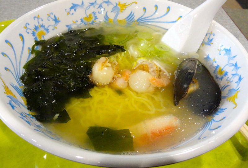 駅に併設されたそば処。ラーメンの人気が高いらしい。立食だが、駅の待合スペースのテーブルでも食べることができる。塩味の利いたスープはなるほど海を連想させる。具にも魚介類が多い。(2014/11)