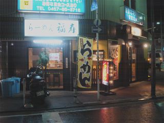 相模線で茅ケ崎駅へ。駅を降りると雨が降ってきた。茅ケ崎駅北口交番隣の吉佐に行こうと思っていたが、また営業していないようだ。そこで、駅前の地図でらーめん福寿を見つけたのでそこへ行ってみた。メニューは、香ばしいマー油入り極上トロ油らーめん(醤油)700、とんこつらーめん(醤油)650、つけめん(醤油)650、それぞれ味噌+150・塩+100、坦々めん 850、カミナリらーめん 800など。餃子もある。麺の硬さ・油の量・味の濃さが調節できる。店名を見た時は和風ラーメンを、「マー油」という文字を見たときには熊本ラーメンを、いろいろと調節ができるということから家系ラーメンを想像した。とんこつらーめん(醤油)を油少なめで注文して、どんなラーメンが出て来るかしばし待つ。