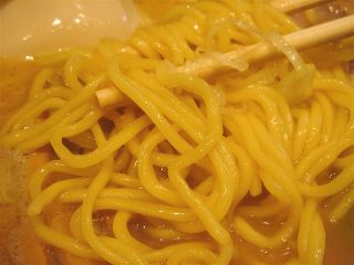 出てきたラーメンはサービスで味玉子が入っていた。スープはあっさりとした白湯だが鶏だけじゃなくて豚骨も入っている感じだ。「海老な」らーめんというくらいだから海老の風味を楽しみにしていたのだが、感じられない。まさかオーダー順番が狂って注文したラーメンの味も間違ってしまったのだろうか? いや、違うであろう。私はスギ花粉症で鼻がつまっていたからであろう。麺は中太縮れ。具は、チャーシュー(鶏)・メンマ・のり・ネギ。(2009/3/25)