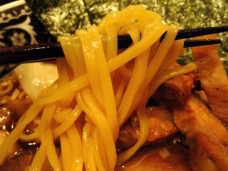 特中村屋は、スープは鶏ガラ中心で醤油が適度あり、全体的に上品な感じである。飲みやすいスープだ。麺は平打ちで喉ごし滑らかな逸品。これなら+50円でも納得する。具も、あぶり焼豚だけでなく、コロ焼豚という短冊形の焼豚も加わりバリエーションが豊富である。柚子塩らーめんのスープを飲んだが、こちらはあっさりさっぱりしたスープと柚子の風味がよくマッチしておりなかなか素晴らしい。(2010/01)