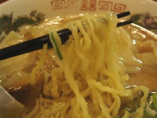 スープは、煮干しの利いたあっさりした醤油味。麺は手打ち縮れ麺でコシがあり、喉ごしがよい。具は、チャーシュー・のり・メンマ・なると・ほうれん草・ネギ。(2008/6/1)