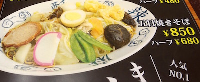 大山街道柏尾道歩きの途中に寄る。藤沢駅の近くにある古久家が本店かな。ここ長後駅近くにも長後店があった。中華そばもあったが、焼きそばを選択。
