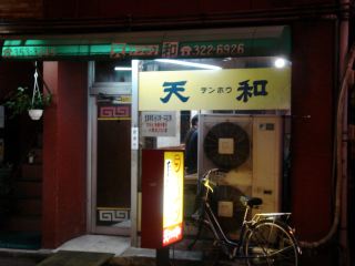 今週末は熊本で仕事、となれば熊本ラーメン。“200食限定”という言葉につられて、ホテルの近くの天和へ。奥に細長い店内の壁には、小柳ルミ子の来店時の写真や、有名人の色紙がズラッと貼ってある。テレビでは「輸入豚肉に関する脱税事件(通称「裏ポーク」事件)で「協畜」に捜査の手が入った」とのニュースが流れている。脱税額はなんと約100億円で、ポークにまつわる事件だけにさすがに金額もピッグである(爆)。