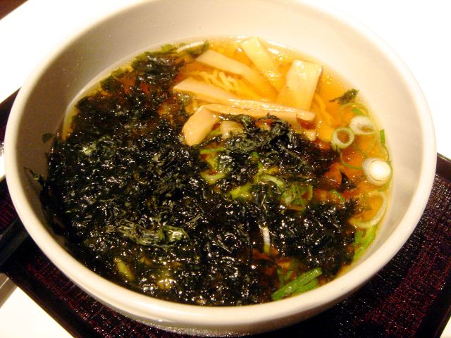 そうです。ここはラーメン屋ではありません。ホテルです。しかし宿泊客に無料の夜鳴きそばサービスがあるのです。そっと行ってみると、かなりのお客さんが集まっています。セルフサービスですが、具の岩のりの海の香りと相まって、街のラーメン屋さんにも負けないような美味しい中華そばになっています。