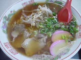 [コメント]千成餅食堂って名前が面白いが、京都に本店があってここが亀岡店という支店だそうです。丼物から定食、そしてうどんやそばの麺類まで多彩なメニューがあります。中華そばを注文しました。スープは醤油色で豚骨+魚系のダシでしょうか。コショウがやや強い感じです。麺は中細やや縮れ麺で柔らかい食感です。具は、チャーシュー(小3)・もやし・青ネギ(九条ネギ?)・紅縁取りかまぼこ。かまぼこを見たときには、和歌山(車庫前)ラーメン風かな?と思ったのですが、食べてみたら京都ラーメンでした。京都に近いから当たり前と言えばその通りなんですがね。食べ終わってお代を払った時に、店の人が「おおきに!」と言ってくれました。京都なんですね、やっぱり。