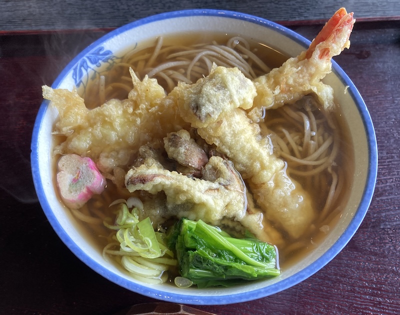 上田電鉄別所線を下之郷駅で下車し、生島足島神社へ向かう。そしてそば茶屋生島の杜による。バイトの女子高校生のくちびるにピアスがあるのをみてテンション下がるのは昭和の人間だからかな? ざるそばでも食べようかと思ったが、何せ陽気が寒い。ということで天ぷらそばを注文。とても温まりました。(2025/3)
