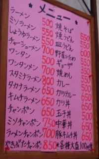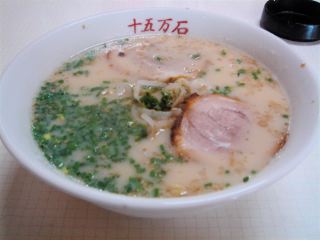 出てきたラーメンは白濁したスープの豚骨ラーメン。ところ変わればで“ラーメン”というと豚骨ラーメンが出て来るのが九州らしい。スープは、あっさりとした豚骨味で油が多め。麺は中細ストレート。具は、チャーシュー・もやし・ネギ。卓上にある紅ショウガを思いきり投入して食べてみた。(2007/9/19)