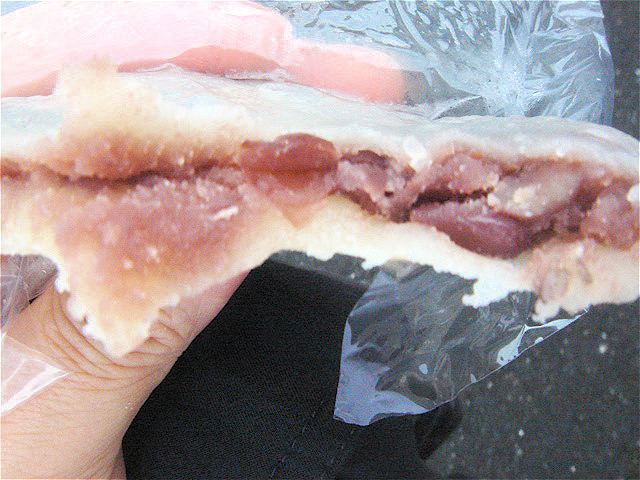 駅から10分ほどの生長堂ではら太餅を一つ買いました。一つ90円なのですが100円硬貨がなかったので500円硬貨で支払ったところ、おつりの100円硬貨がないらしく、結局「お代はいらないよ。試食でいいよ」と言われました。「はら太餅」じゃなくて「太っ腹餅」と名前を変えた方がいいようです(笑)。そんな状況で手に入れたはら太餅がまずいわけがありません(爆)。あんこを薄い餅でくるんでいるようです。食感は柔らかくてとても美味です。(2011/05)
