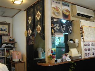 沖縄最後の日は国際通りでお土産を探す。今日も那覇は日差しが強い。国際通りの中央にある三越の前で、平和通りと市場中央通りの入口の間にある。お腹が空いたので開店時刻の11時ちょうどに店に着くも、まだ準備中の札がか かっている。ずうずうしくも店内を覗いていると、お店の人が出てきて「どうぞ」と店内に招いてくれ、口開けの客となった。