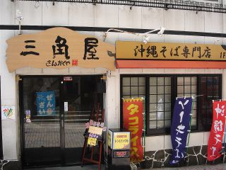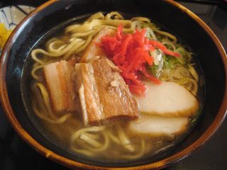 国際通りの三越のすぐ隣にあるお店。家族連れなどが多い。沖縄そばを注文。出てきた沖縄そばは、麺は不揃いの平打ち麺。かなりモチモチとしており特徴 的である。スープはあっさりとしている。具は、三枚肉(3)・カマボコ (2)・ネギ。(2008/5/25)