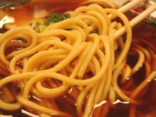 出てきた中華そばの、麺は極太! 本当に太い! ワシワシと食べる感じだ。スープは和風のかえしの醤油が強めで、こしょうがかなり利いている。油は少ない。具は、チャーシュー・メンマ・ネギとシンプル。アットホームな雰囲気であっという間に完食した。(2007/8/31)