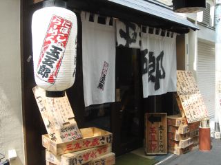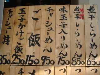 メチャクチャ暑い中をてくてく歩いて向かう。向かう先は煮干しらーめん玉五郎。2006年9月開店だが、すでに二代目は大阪・日本橋にあるようだ。道路の反対側には焼肉玉五郎というお店もある。姉妹店なのだろうか? メニューは、煮干しらーめん650、特製煮干しらーめん850、味玉子入りめん750、チャーシューめん950、つけめん(1.5玉)700・(2玉)800・(3玉)850・(小盛)650、メンマ盛200、チャーシューメンマ盛350、ご飯150、玉子かけご飯250、チャーシュー丼350、缶ビール350など。暑いけれど、煮干しらーめんを注文ししばし待つ。
