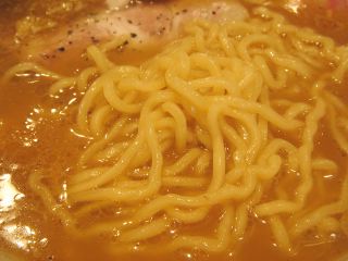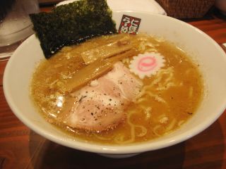 手際よい作業で作られたらーめんは、スープは煮干しがたっぷりと利いているダシで、他には昆布や豚骨などだろう。麺は中太縮れでプリプリとしている。具は、チャーシュー・メンマ・のり・なると・ネギ。私好みの和風の味だ。(2007/9/2)