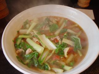 トマトラーメンの専門店。メニューは宝天麺(レギュラー)800、同(ヤキブタ)1100、同(大盛2玉)1100のみ。スープは塩ベースでトマトの酸味が適度である。トマトとラーメンの相性が意外といい。麺は中細ストレート麺。具は、セロリ・青菜・豚バラ肉・トマトなど。(2005.4.8)