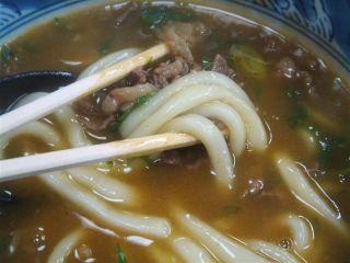 出てきたカレーうどんのカレーの香りが食欲をそそる。薄めのカレーがスープとなっている。当たり前だが、トッピングとしてカレーがかかっているのとはわけが違う。熱々なのでフーフーしながら食べる。うどんは滑らかで噛みごたえがある印象だ。讃岐うどんとは異なる美味しさである。