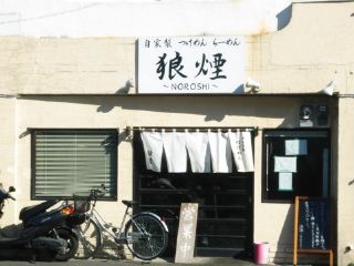 2007年12月10日開店の比較的新しいお店。ラーメン特集のテレビ番組で1位となった高田馬場の「俺の空」で5年も修業をした人が独立した。お店に着くと、店外に5人、店内に3人待ち。なかなか人気があるようだ。券売機にて濃厚狼煙らーめんの食券を買いしばし待つ。つけ麺を頼んでいる客が圧倒的に多い。