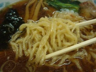 スープは鶏ガラベースの醤油味。油の量は少ないというわけではないが、まろやかなスープに仕上がっている。麺は手打ちの中縮れで、思いっきり縮れておりなかなか美味しい。具は、チャーシュー・メンマ・のり・ほうれん草・ナルト・ネギ。(2006.05.24)