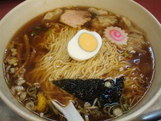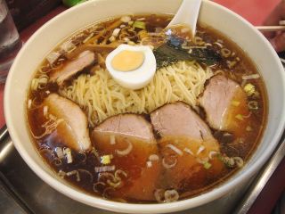 見ていると大きな丼に入ったラーメンを、ステンレス製のお盆に乗せて出している。スープは、多量の煮干しと鶏ガラ(かなぁ?)主体のダシ。そして中縮れ麺の量はかなり多いようだ。普通盛で280g、大盛ではなんと420gらしい。具は、ワンタン(8-10個)・チャーシュー(1)・メンマ・茹で卵(1/2)・のり・なると・ネギ。柚子も入っている。チャーシューメンのチャーシューは5枚。麺の量は多めだったが、美味しいのでスルスルと食べることができた。ワンタンも美味しいし、近くにあったらかなり通ってしまいそうである。コップの水を何度も何度もつぎ足してくれていた。腹も心も満たされて、試合に向かった。初回からリードを奪い、7対4で勝利を収めた。(2007/11/18)