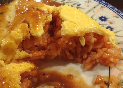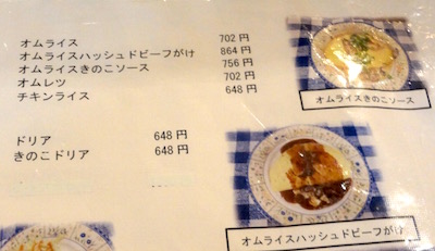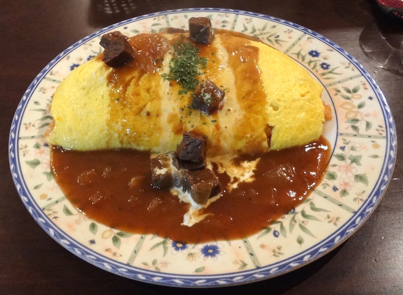 創業1925年の老舗の洋食店。お店に18時20分前に到着。寒いけどしょうがない、開店時刻の18時まで20分くらい待とう! と思っていると、なんと10分前の17時50分にドアが開きウエイトレスさんが、「お待たせしました。中へどうぞ」と入れてくれた。メニューの中から、オムライスのハッシュドビーフがけを選択。店内に流れるジャズに耳を傾けていると、そこへオムライスが出てきた。