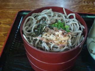 JR木次線周囲はのどかな田園〜山村風景なのだが、扇屋の店内は都会並の混雑だった。ジモティーらしき人たちが次ぎから次へと車でやってくる。4時間ほど前に列車の中で、ここの“そば弁当”を食べたのだが、また食べたくなってしまった。メニューを見て割り子そばを注文する。