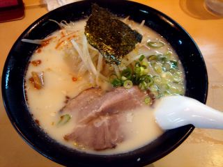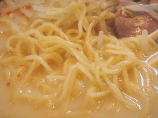 塩味の白湯スープのラーメンは、デフォルトでラー油が入っている。少し塩気が多いかな? 麺は中細ほぼストレート。具はメンマ・もやし・チャーシュー・のり。(2007.5.25)