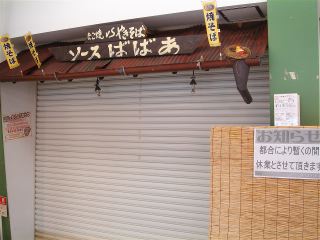 駅へ戻り、ドン・キホーテ内の第二候補の「ソースばばあ」へ行くと、「都合により暫くの間休業とさせて頂きます」との張り紙が・・・・・ ついてない・・・・・・