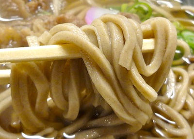 出てきた肉そばは、太さがまちまちのそばが手打ちらしい。この祖谷そばはそば粉:つなぎ=9:1の手打ちということが売りのようです。寒い時期にこのようなおそばが食べられるだけでうれしいのです。身体が温まりました。(2013/12)