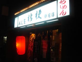 本店は初台にあるが、ここは新宿店。メニューは、ざるらーめん780、もやしざる880、味玉ざる880、肉ざる1,100、味玉ざる1,200、特製桔梗ざる1,000、冷やしざる880、らーめん680、もやしらーめん780、味玉らーめん780、のりらーめん830、味玉らーめん780、のり玉らーめん930、特製桔梗らーめん900、肉らーめん1,000など。タレは醤油と塩が選べて、麺の量は普通は1.5玉であり、中盛2玉(同額)、大盛3玉(+100)、特盛4玉(+250円)となっている。またざるらーめんはあつもりも可能だ。ざるらーめん 醤油をあつもりで注文。薩摩守あつもり、ではない(笑)。