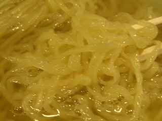 “あつもり”とは写真のように釜揚げの状態で出て来るラーメンである。麺は多加水の中縮れ麺。これと言って大きな特徴はない。普通に美味しい。つけ汁は酸味・辛味のピリリと効いた醤油味。具は、チャーシュー・メンマ・のり・ほうれん草・ネギ。(2006.10.13)