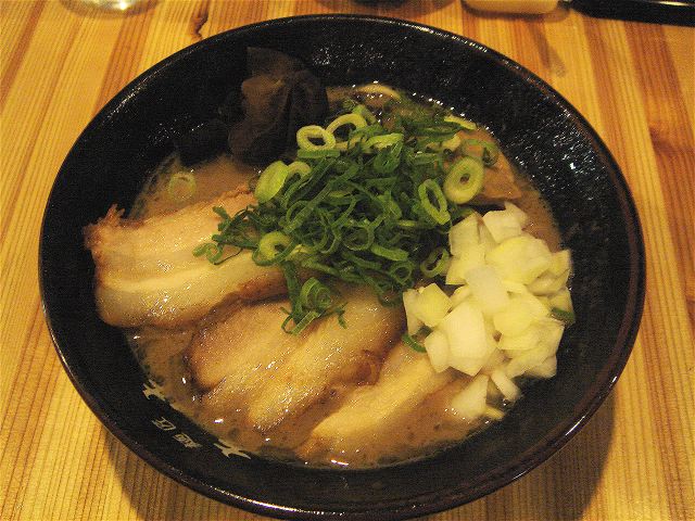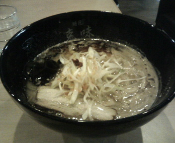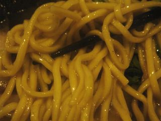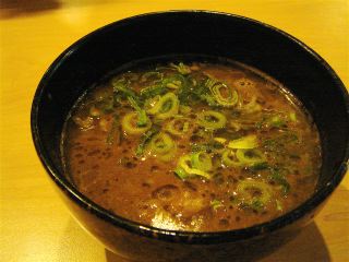 出てきたラーメンは、スープは茶濁している。問題は色ではない。トロミなのだ。ドロドロで液体と固体の中間くらいで、まるでポタージュのようなのである。“スープを飲む”とは言うが、“スープを食べる”感じなのである。麺は中太ストレート。加水率が低くて、ボソボソしている。具は、チャーシュー・タマネギ(ミジン切り)・キクラゲ・メンマ(幅広)・ネギ。具も個性的である。なかなかの衝撃とともにお店を出て、さりげなくメニューを見ると、さらにプチ衝撃が・・・。私の注文した「特製超濃厚NEOトンコツ」には“味玉”がついているではないか! 味玉を忘れられたようだ。あぁ、味玉・・・・・(2009/12/6)