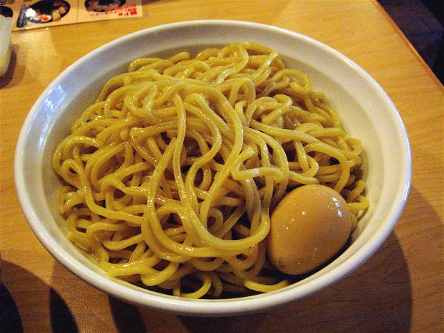 つけ汁は濃厚ドロドロのベジポタ系です。写真ではわかりにくいですね。とにかくドロドロのつけ汁で、魚介の香りをかなり強く感じます。麺は極太のも ちもち麺です。啜るよりも食べる麺ですね。お腹いっぱいになりました。午後の会議もがんばりましょう!(2010/10)