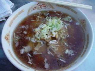 今朝は、未食の大一で朝食を食べようとしたが、まだ準備中。午前7時であるが、他の店はほとんど営業しているのにずいぶんのんびりしている。井上にしようかと思うが行列に並ぶのもなぁ、と考えて若葉へ。中華そばを注文。あっさりダシの醤油味のスープは身体がポカポカ暖まる。麺は、極細麺。これが特徴。具は、メンマ・チャーシュー(3)・ネギとシンプル。(2004/11/5)