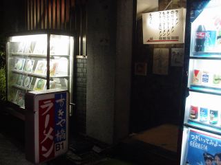 サラリーマンのサンクチュアリと呼ばれるヤキトリストリートで、知人と二人で焼き鳥と焼酎を堪能した後、閉店間際のすきや橋ラーメンに行きました。地下1階にあるこのお店に行くには狭い階段を降りなければなりません。券売機でなんとなく「ラーメン」の食券を買ったようです。店内はがらんとした剥きだしのコンクリート床にU字型のカウンター。隅にテーブルが二つあるも使われているのかいないのか・・・(後で調べたところ、雀荘だった場所らしいです)。テーブル上には“化学調味料は使っていません”と書いてあり、壁には“自家製卵麺”と貼ってあります。