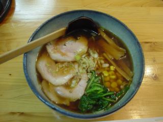 スープは醤油ダレが強く、ダシが薄めに感じる醤油ラーメン。麺は、中細縮れ麺。具は、チャーシュー(3)・メンマ・コーン・ほうれん草・ネギ。酔っぱらっていてよく覚えていません。(2005.06.15)